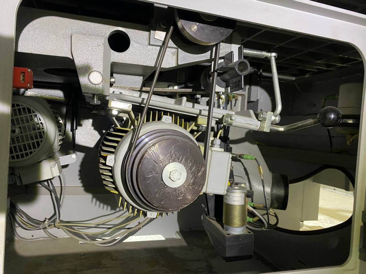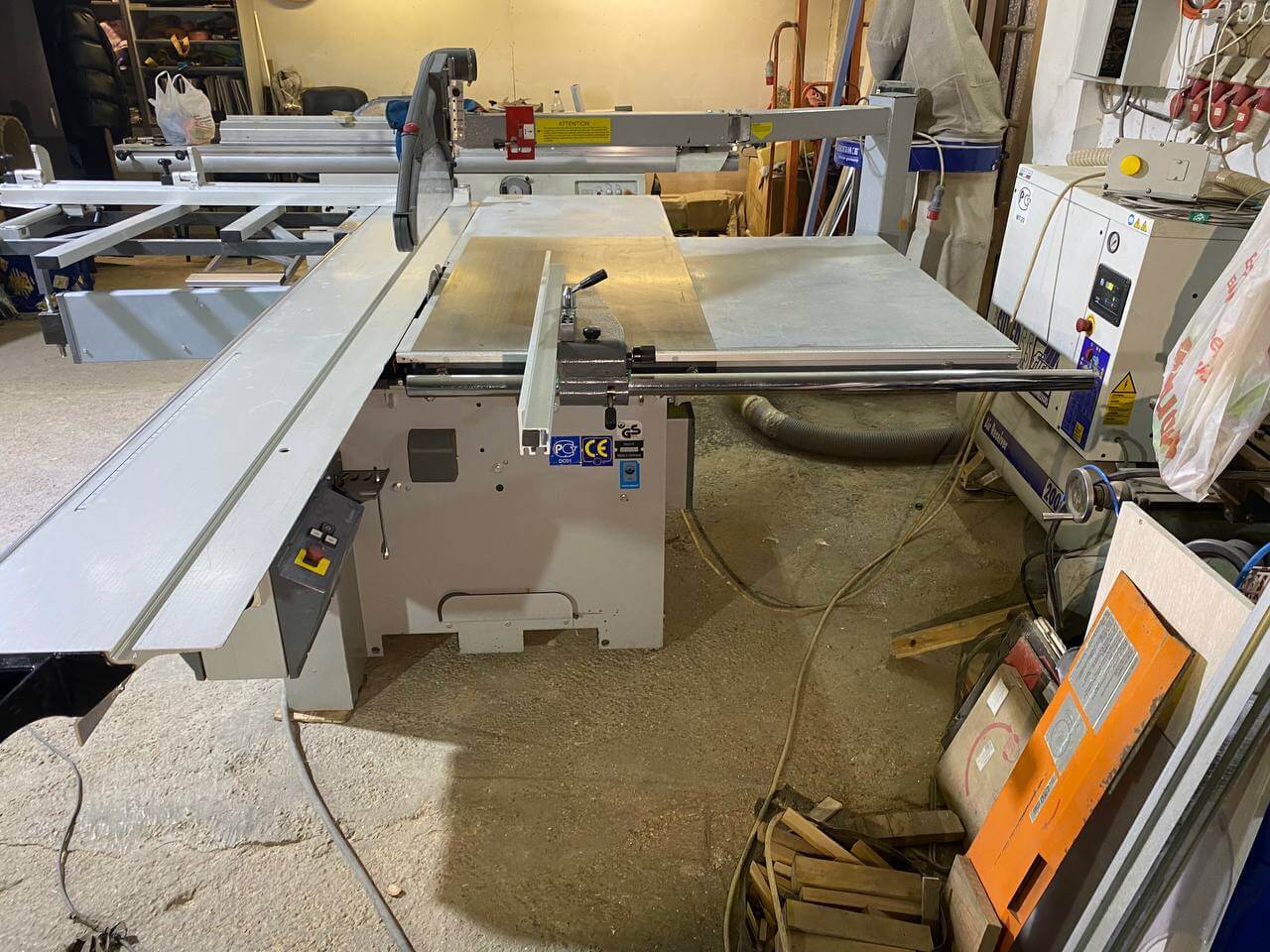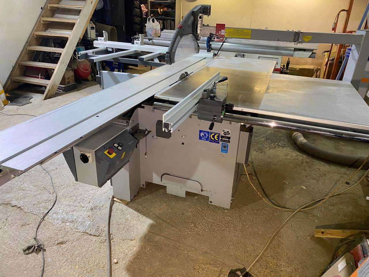 На ручке-толкателе двух роликовой каретки находятся четыре кнопки для включения и выключения основного пильного диска и подрезателя. Это очень практично, так как кнопки всегда под рукой, и оператору не нужно совершать лишних переходов у станка. К тому же повышается безопасность работы. Управлять пильным диском и подрезным узлом можно попеременно, как с пульта, так и посредством кнопок на каретке, без каких-либо особых «переходных» переключений.