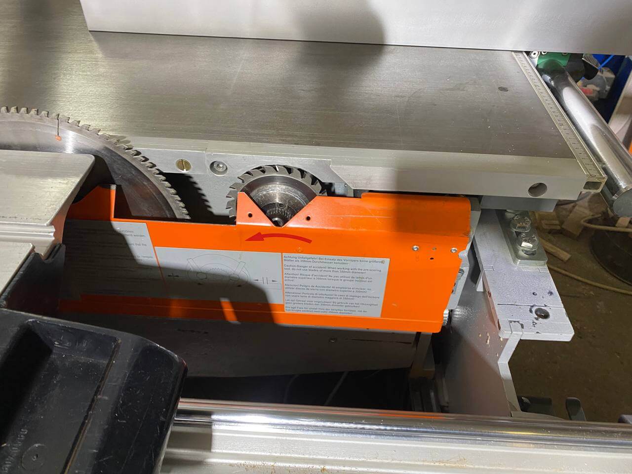 Настройка положения подрезной пилы по вертикальной и горизонтальной осям осуществляется электромеханическим способом. Применяемая система управления на станках Аltendorf F-45, позволяет производить регулировку положение подрезной пилы при работающем станке. Подрезная пила перемещается по по вертикальной и горизонтальной автоматически, после введения необходимых параметров на пульте управления. При отключении пильного агрегата, подрезной диск автоматически опускается ниже рабочего стола. При этом предыдущие настройки сохраняются в памяти станка. При повторном включении подрезная пила занимает то же положение, сохраняя предыдущие настройки.