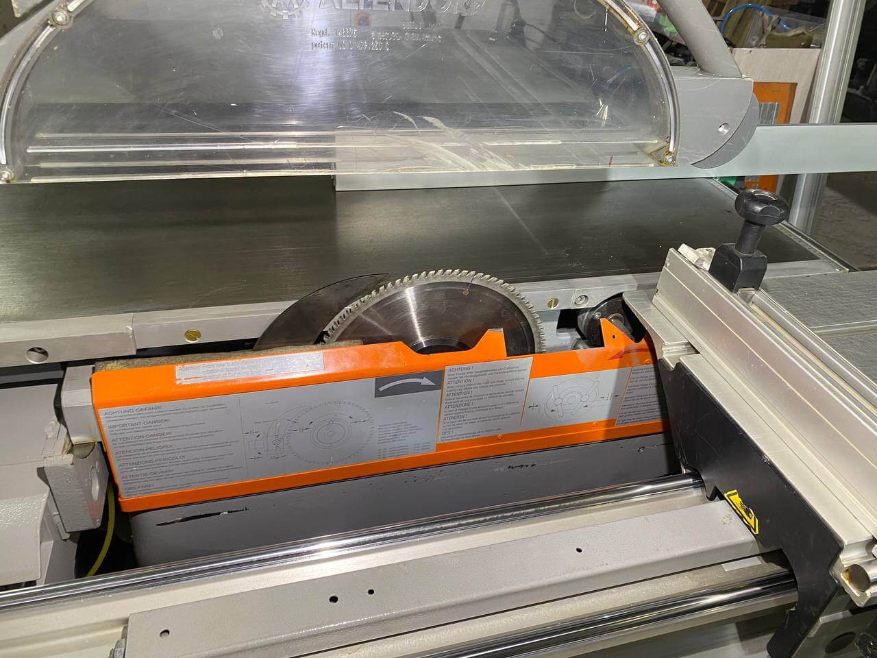Форматно-раскроечный станок Аltendorf F-45 состоит из верхней и нижней алюминиевых частей покрытых оксидным слоем. В каждую из которых установлены круглые стальные направляющие между направляющими находится тележка с коническими роликами большого размера. Для стабилизации каретки при перемещении в верхней части каретки установлены ролики с подшипниками для стабилизации перемещения каретки. Эта система перемещения каретки обеспечивает абсолютную лёгкость хода каретки, отличающего его от других станков подобного типа.