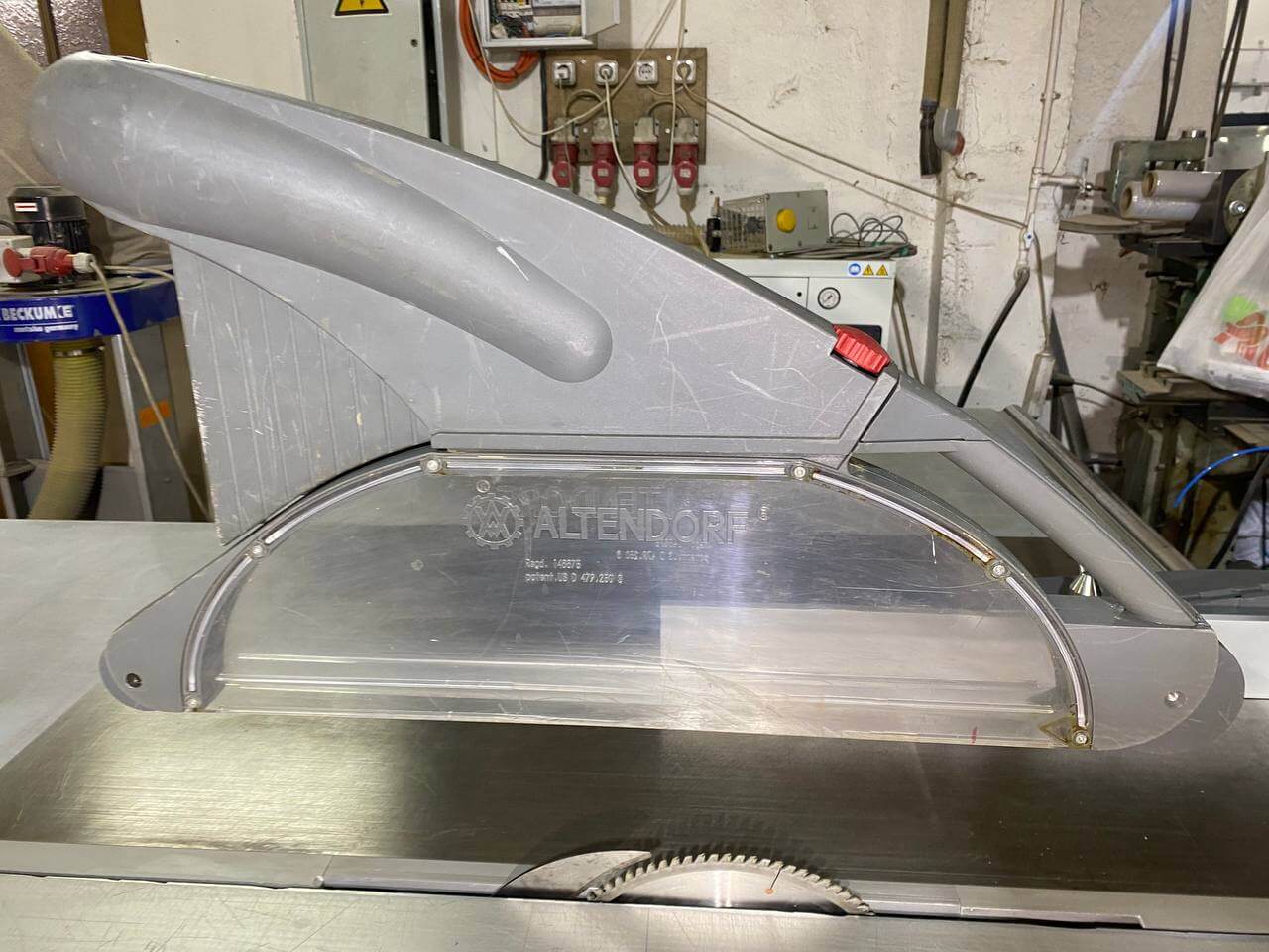Форматно-раскроечный станок Форматно-раскроечный станок Аltendorf F-45 комплектуется двумя вытяжными колпаками. Первый вытяжной колпак для реза под 90 градусов, второй рассчитан на наклон пильного диска до 45 градусов. Колпак легко перемещается по линейным направляющим, и при отсутствии в нем необходимости его можно отвести из рабочей зоны. При использовании такого колпака максимальная высота пропила составляет 200 мм.