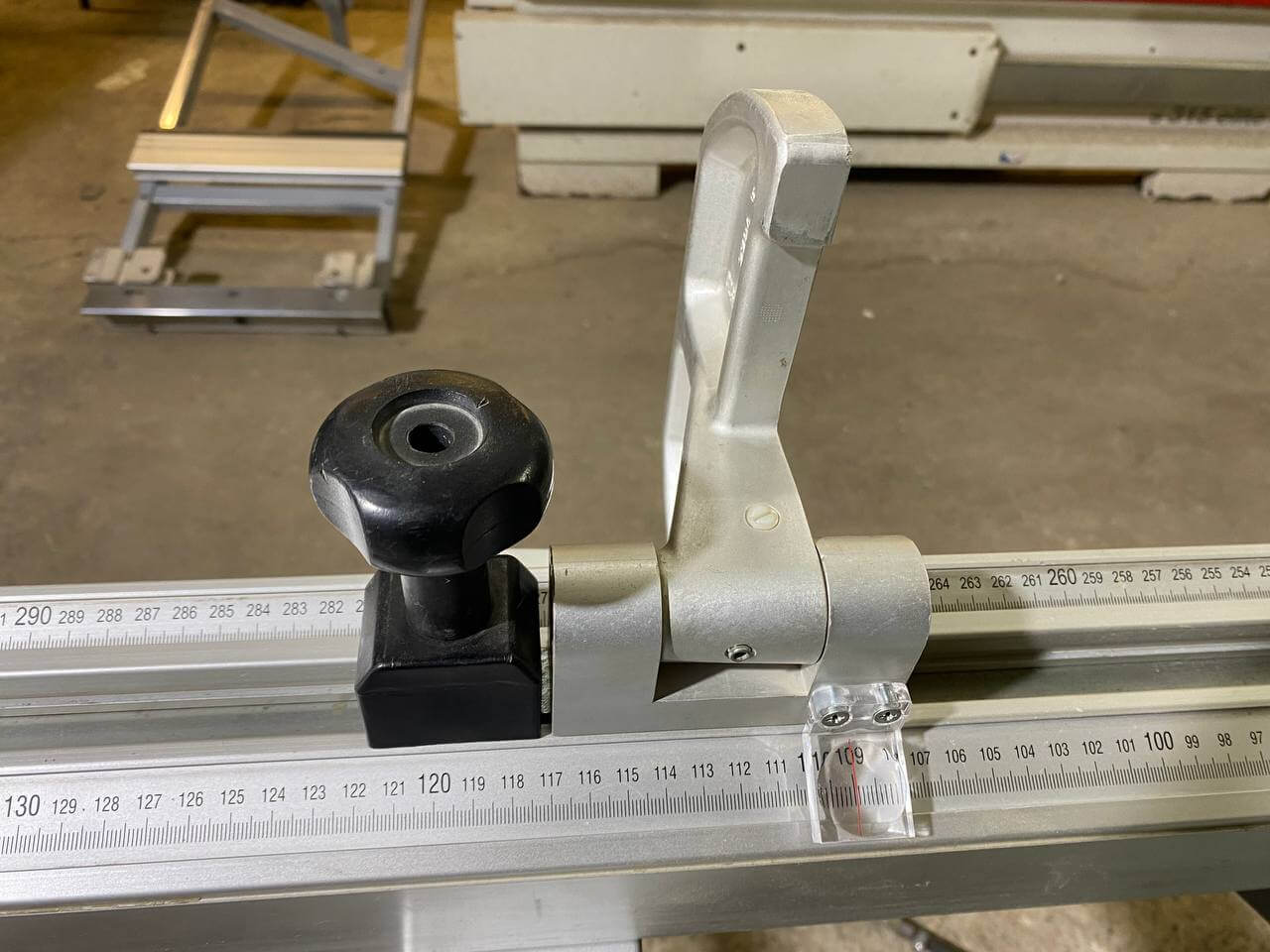 Поперечный упор разработан инженерами Аltendorf запатентован фирмой Altendorf. Поперечный упор оснащен системой корректировки длины. Эта система упрощает перестройка станка для раскроя под прямым и непрямым углом с точным соблюдением размеров. Поперечный упор оснащен наклонными цифровыми шкалами для удобства считывания.