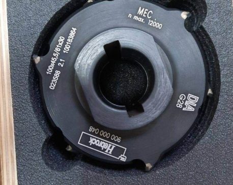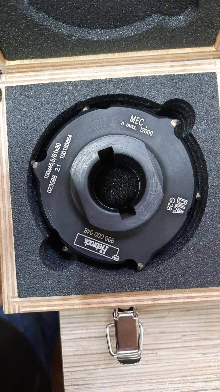 Фрезы алмазные Hebrock с напайками из PKD из PKD поликристаллического диаманта. Предназначены для предварительной фрезеровки кромки заготовки. Заводом Hebrock, рекомендована глубина фрезерования 0,4 мм. Фрезы алмазные с напайками из PKD изготавливается с 2-мя заходами, и с высотой до 56 мм. PKD - поликристаллический диамант. Фрезы устанавливаются на узел предварительной фрезеровки кромки заготовки. Используются на станках Hebrock серий AKV 3000 DK-F. Устанавливаются кромкооблицовочных станках на узел предварительной фрезеровки кромки заготовки таких как HEBROCK AKV 3005 DK-F, HEBROCK AKV 3007 DK-F. Узел предварительной фрезеровки предназначен для устранения сколов на заготовках (ламинате), после распиловки на станках с функцией пакетного раскроя, форматно-раскроечных центрах, и для устранения «ступеньки» после раскроя на форматно-раскроечных станках. Оптимально, узел предварительной фрезеровки торца заготовки настраивается на глубину фрезерования торца заготовки 0,4 мм. Максимальная глубина фрезерования до 2 мм. Состоит из двух высокочастотных электродвигателей по 2.2 кВт левого и правого вращения. На электродвигатели устанавливаются алмазные двухзаходные фрезы с напайками из поликристаллического диаманта (ПКД) производства Hebrock, высотой режущей части 45 мм.